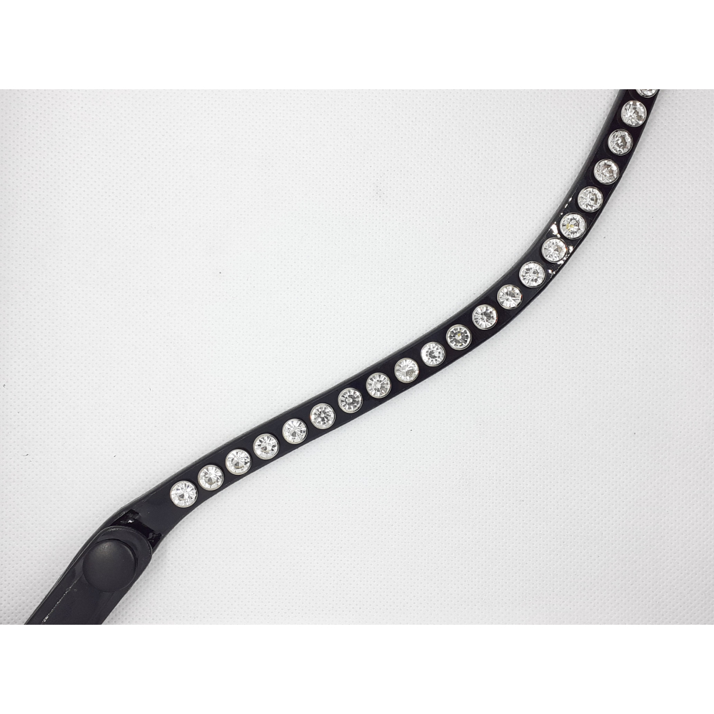 Luxe Frontriem met drukknopen voor het makkelijk wisselen. gemaakt uit mooi stevig zwart lakleder.